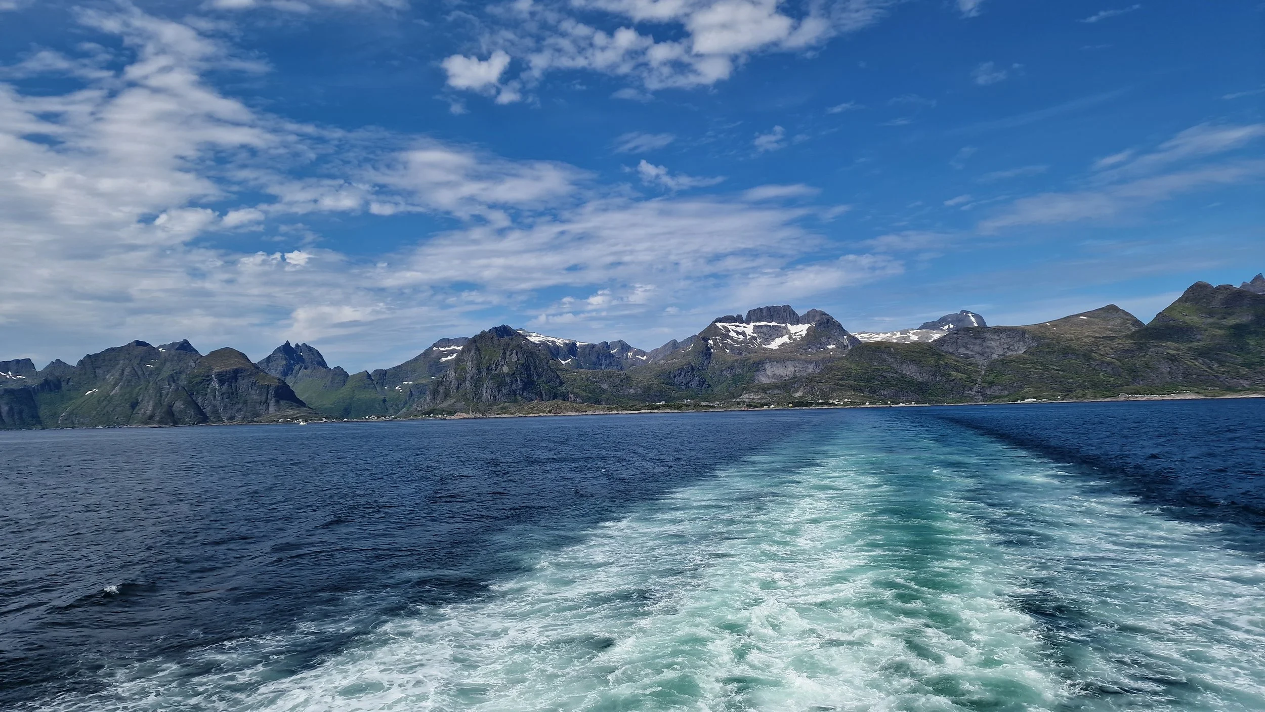 Vi forlater Moskenes i Lofoten med kurs for Bodø den 25. juni